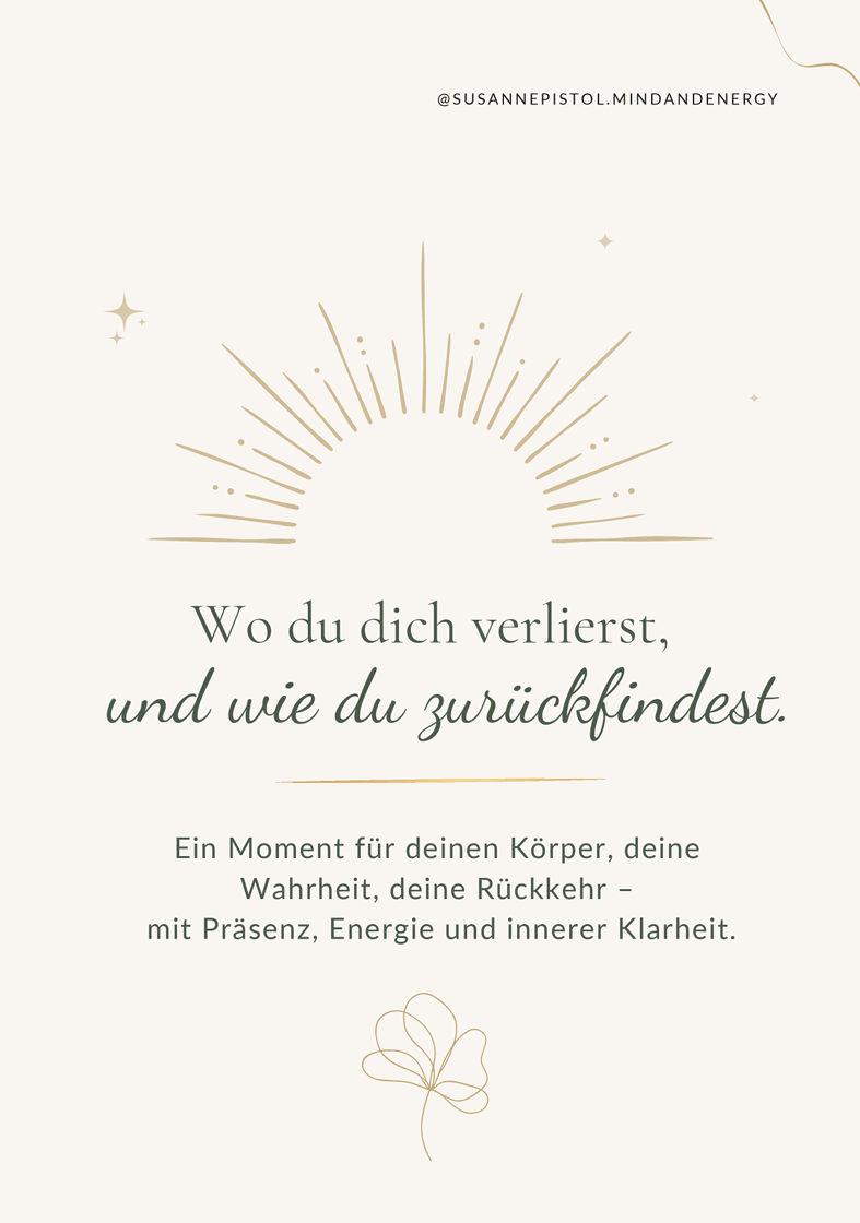Es verbindet Körperwahrnehmung, innere Klarheit und feine Impulse, die dich dabei unterstützen, dich selbst bewusster wahrzunehmen, jenseits von Funktionieren und Anpassung.